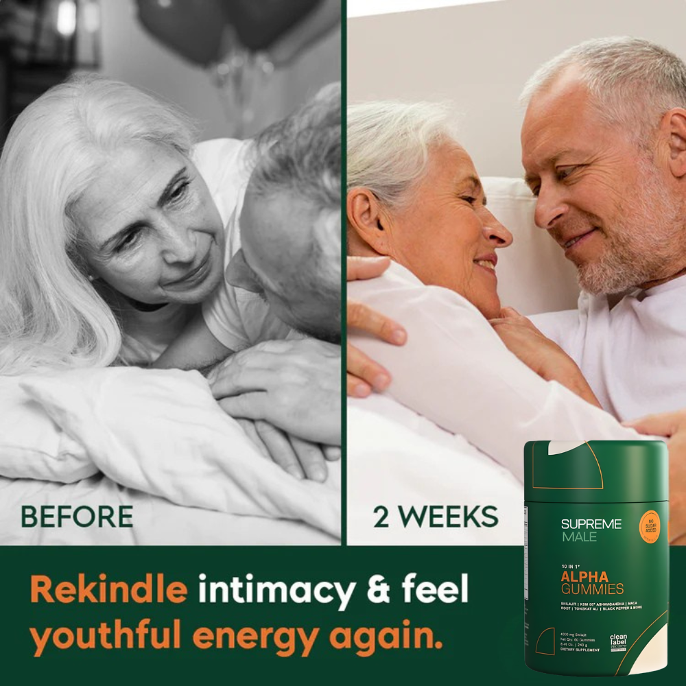 Supreme Male Alpha Gummies are formulated to support stamina, vitality, and youthful drive — so you can feel confident, energized, and closer to your partner again.